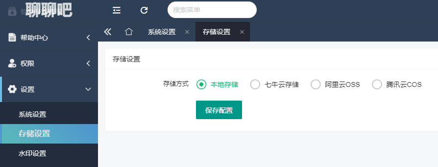 3.选择存储方式,正式上线建议选择七牛云、阿里云OSS、腾讯云COS方式,全部本地存储的话用户量大了,资源文件多了会拉跨服务器,因为系统上传的图片、视频、文件都按你指定选择的方式存储。(本步骤按个人需要选择)