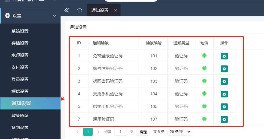 6.设置短信模版,短信模版请提供商申请的模版一样设置。